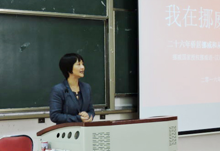 6月24日,挪威唯一具有国家执业资质的挪威语-中文翻译朱葵女士应邀到新葡萄官网进行了题为“我在挪威做翻译”的专题学术讲座。外国语学院副院长赵俊姝主持讲座,外国语学院部分师生参加了讲座。