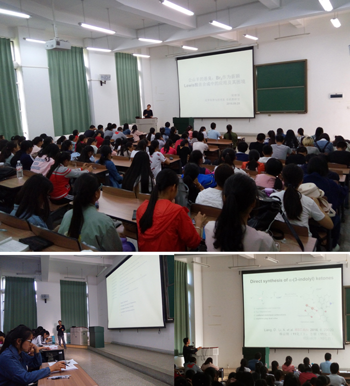 9月28日,化科系在博雅楼3102召开了题为“公山羊的恶臭:Br2作为新颖Lewis酸在合成中的应用及其困境”的学术讲座,讲座由有机教研室教师梁德强主持。本次讲座由科研处主办,新葡萄8883官网AMG化学科学与技术系承办,化学科学与技术系2016级和2015级部分同学参加了本次讲座。