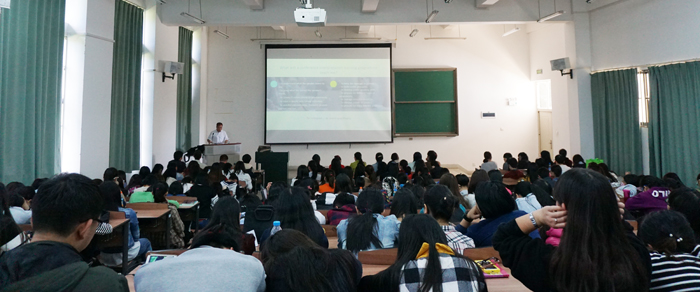 为鼓励外国语学院学生增进对翻译工作的了解与认识,增强学习英语的积极性, 11月6日 下午,在新葡萄官网博雅楼3103教室,外国语学院邀请到海南大学曾传生教授为外国语学院学生作了主题为“My views on becoming a conference interpreter” 的讲座。 外国语学院张廷茂老师首先代表学院致辞,对曾传生教授的到来表示热烈的欢迎。