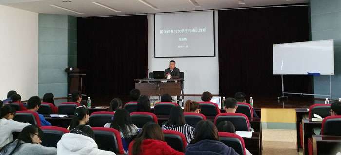 11月20日下午,新葡萄官网人文学院吴彦勤教授在惟行楼4301报告厅作了题为《国学经典与大学生通识教育》的学术讲座,这是2015年由省委宣传部、省社科联主办的“云岭大讲堂”在新葡萄8883官网AMG的第八讲。