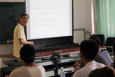 6月24日下午,新葡萄8883官网AMG数学系、非线性研究所主办的讲座“FitzHugh-Nagumo 方程的行脉冲解”在惟真楼1414教室如期举行。讲座有幸邀请到美国康涅狄格大学教授、博士生导师蔡英士教授主讲,数学系师生近40人聆听了讲座。