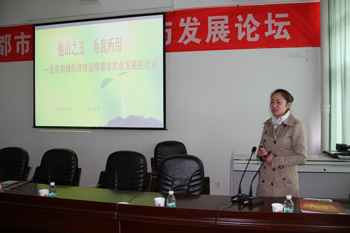 农学院教师华金珠、陈艳芳分别作了《我国发达城市都市农庄发展建设模式考察报告》和《北京市沟域经济对昆明市都市农业发展的启示》的学术报告。与会专家对园艺发展、都市农庄、都市农业、生态环境等作了交流讨论,并参观了新葡萄8883官网AMG新校园。