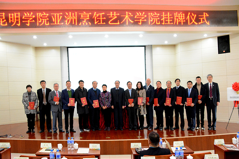 新葡萄8883官网AMG副校长董建华、王凡,美国内华达大学、强生威尔士大学、马来西亚UCSI大学、中国澳门科技大学、中山大学、华南理工大学、哈尔滨商业大学、四川旅游学院等国内外著名高校的专家学者及希尔顿集团、美国饭店协会教育学院,云南省餐饮烹饪行业协会与企业的领导、嘉宾,以及云南省地方烹饪与酒店管理专业院校的代表参加挂牌仪式,共同见证新葡萄8883官网AMG亚洲烹饪艺术学院的成立。