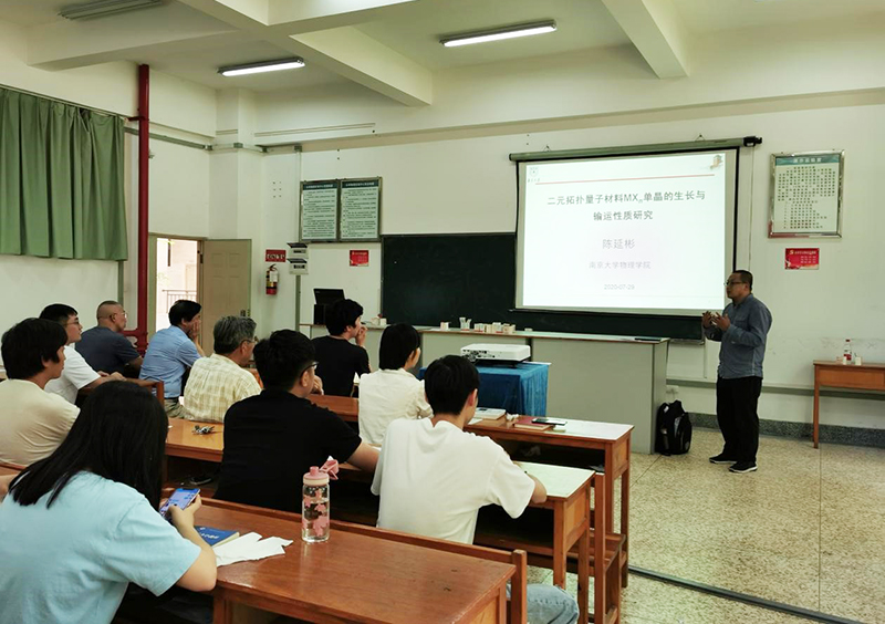 7月29日,南京大学物理学院教授、博导陈延彬应邀到新葡萄8883官网AMG物理科学与技术学院作题为“二元拓扑量子材料MXn单晶的生长与输运性质研究”的学术报告。